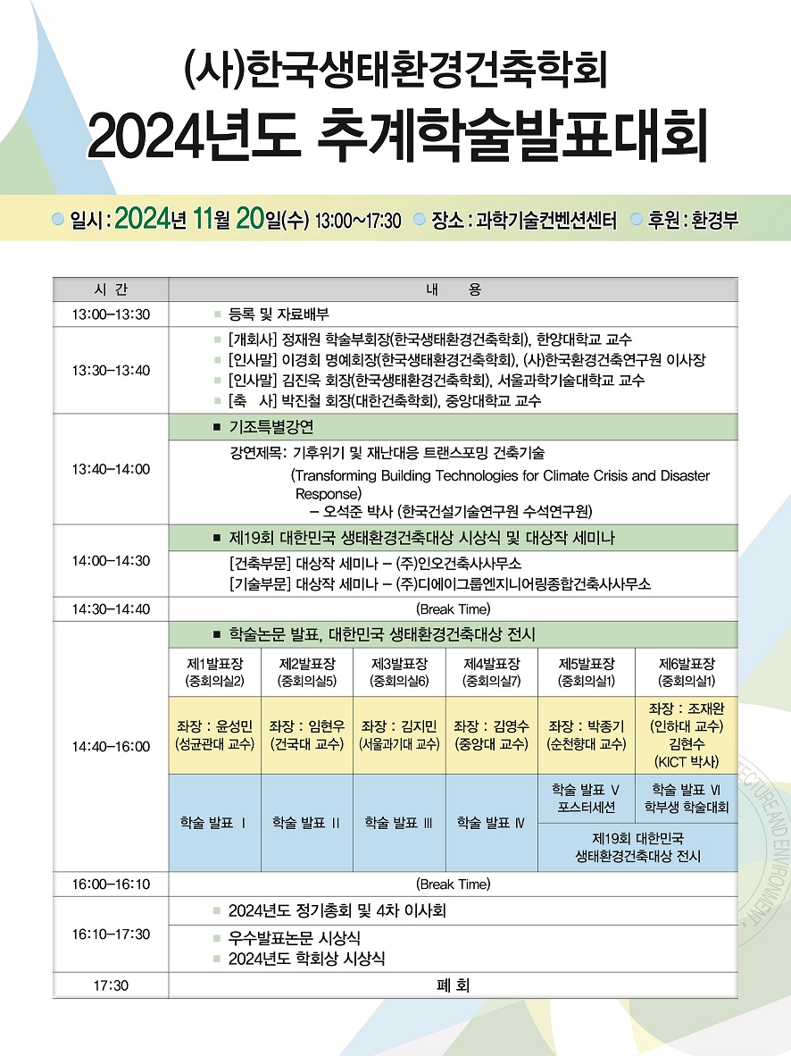2024년도 추계학술발표대회 프로그램 안내(발표순서 포함)